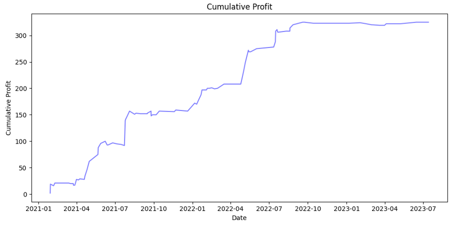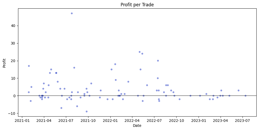As can be seen, it increased the average profit per trade even more. However, the standard deviation also increased, so we can draw a conclusion, that, despite being more profitable, model became less stable, which is a very natural result considering risk-profit tradeoff.